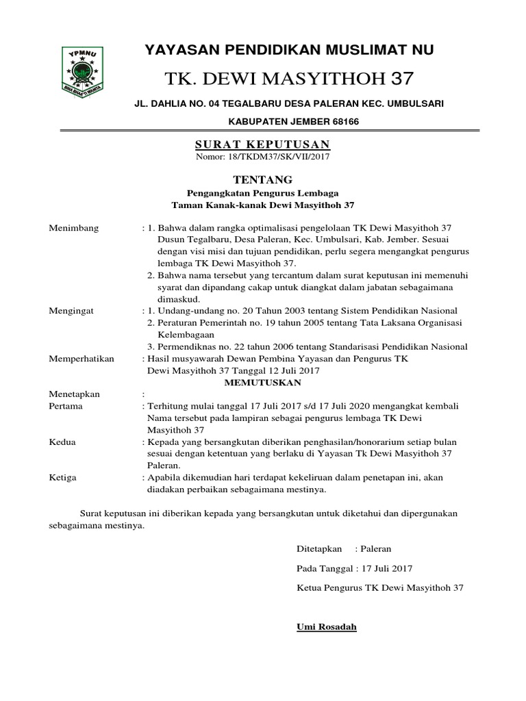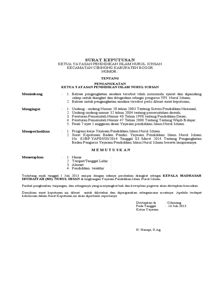 Contoh Sk Pengangkatan Pengurus Yayasan - Sk Ketua Ponpes Tanggul Hasan - Contoh sk pengangkatan pengurus yayasan.. Check spelling or type a new query. We did not find results for: Maybe you would like to learn more about one of these? Contoh sk pengangkatan pengurus yayasan.